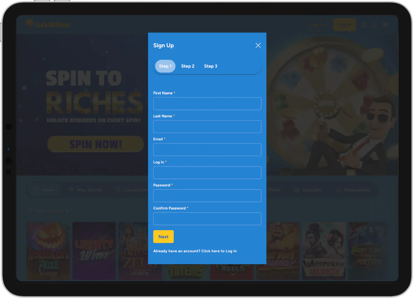 - Accede a la página principal de JackMillion Casino desde tu navegador.
