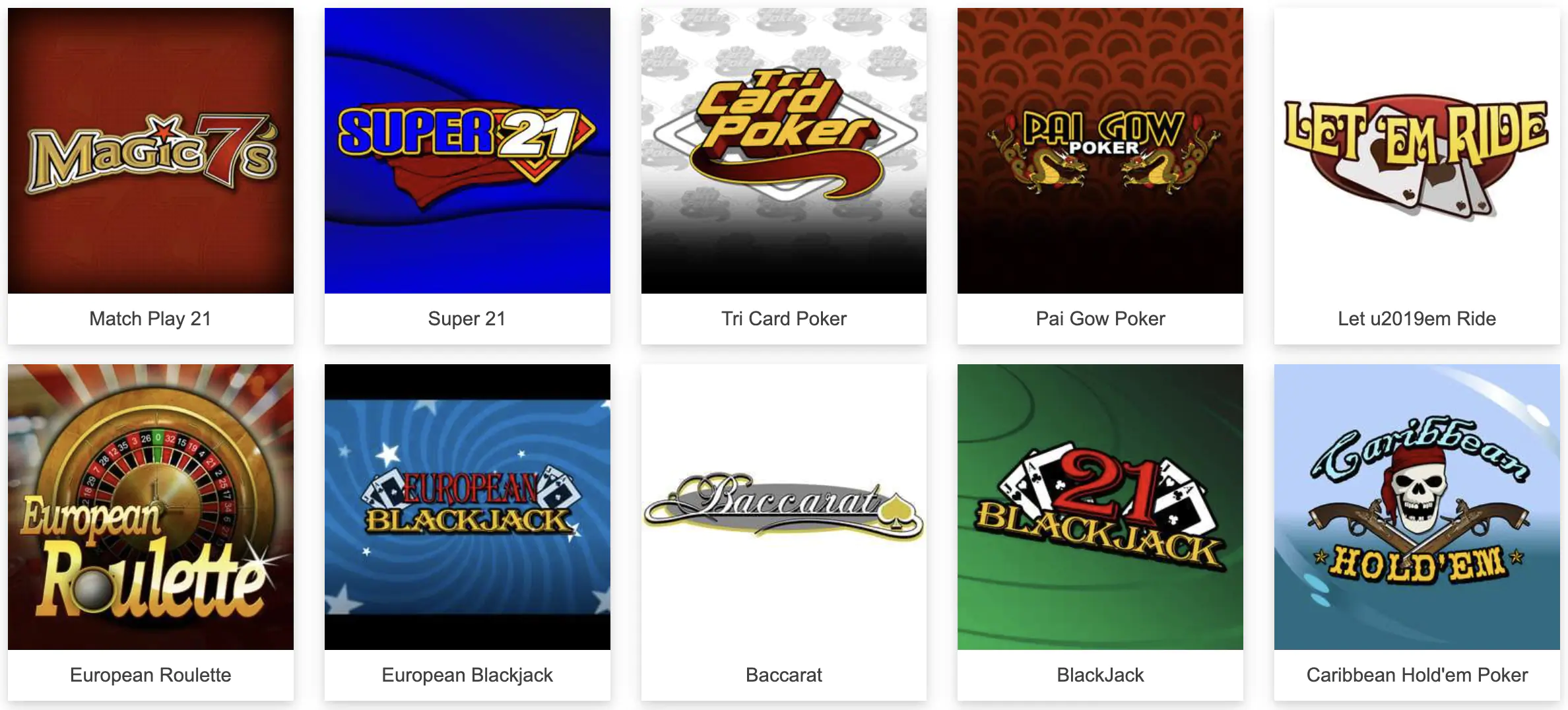 | Juegos | Tragaperras, blackjack, póker, video póker |