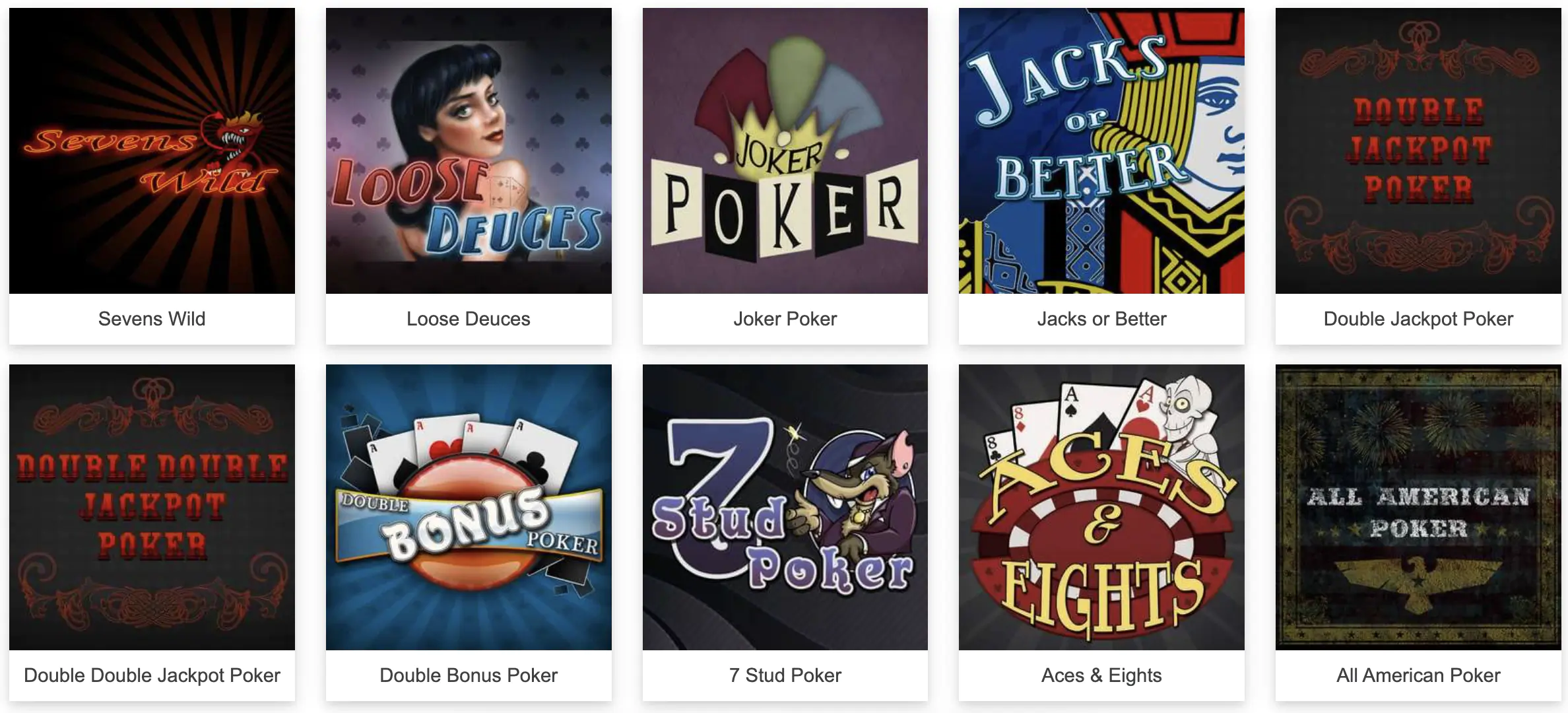 Quienes disfruten del póquer convencional, también pueden probar suerte en todos los juegos de video póker que tenemos en JackMillion online casino. Una versión parecida al póker tradicional pero con una mecánica mucho más rápida y dinámica.